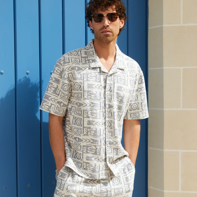 Threadbare UK: Navy Patterned Textured Pull On Shorts