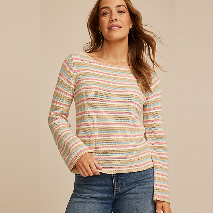 Multicolor Striped Bell Sleeve Sweater